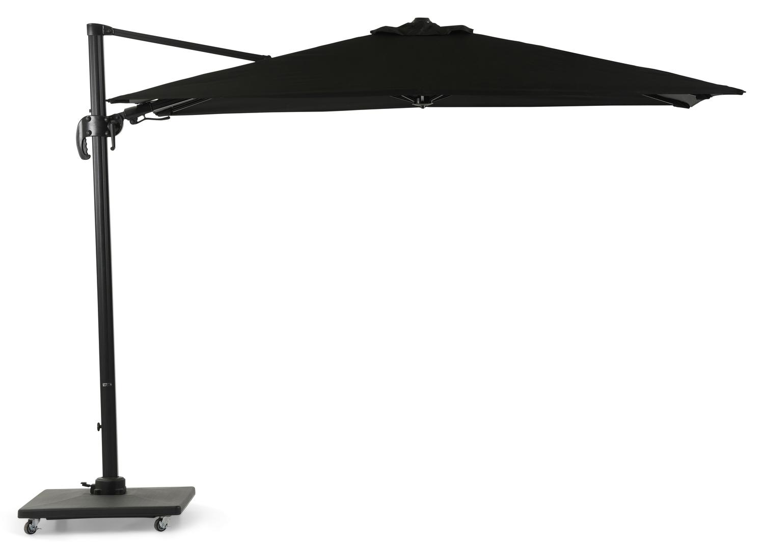 Avola zweefparasol met tiltfunctie in zwart aluminium met zwart weather+ softtouch parasoldoek – L1 200 x L2 300 cm (met voet)