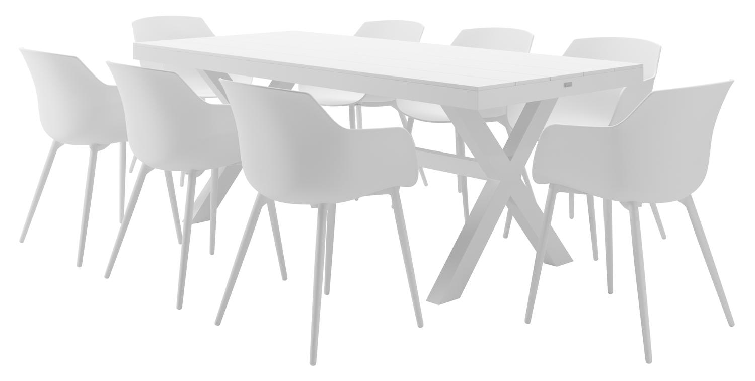 De Bahia tuinset in wit aluminium met 8 Paco tuinstoelen is van het merk Vinci en is hier verkrijgbaar in de kleur wit.