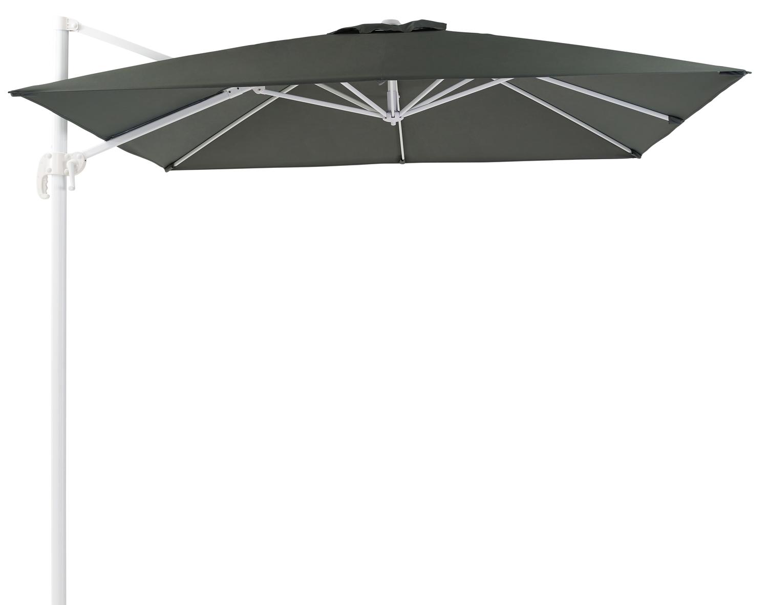 De Calpe zweefparasol in wit aluminium met grijs polyester parasoldoek – L1 270 x L2 270 cm (zonder voet) is van het merk Vinci en is hier verkrijgbaar in de kleur grijs/wit.