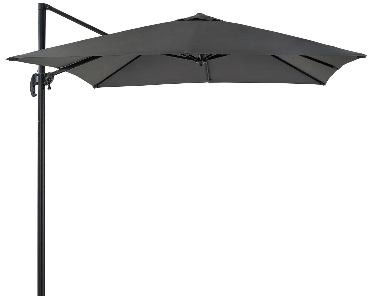 De Calpe zweefparasol in zwart aluminium met grijs polyester parasoldoek – L1 270 x L2 270 cm (zonder voet) is van het merk Vinci en is hier verkrijgbaar in de kleur zwart/grijs.