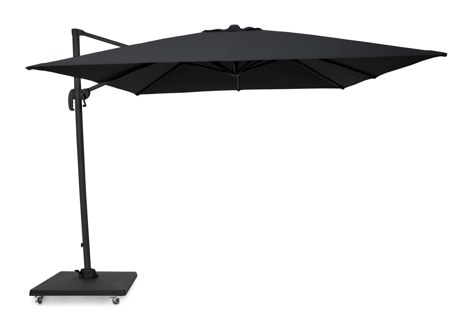Calpe zweefparasol in zwart aluminium met zwart polyester parasoldoek – L1 270 x L2 270 cm (met voet) kopen?