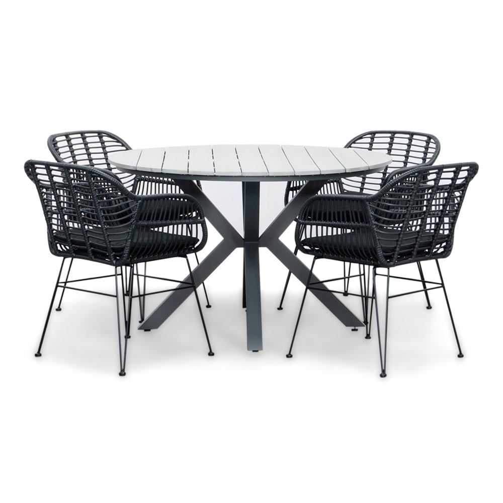 Cervo Grey/Napels dining tuinset 5-delig | polywood + wicker | 120cm rond