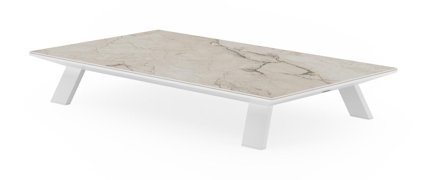 De Cesano loungetafel in wit aluminium en colorado dunes volkeramiek – L 140 x B 80 x H 24 cm is van het merk Bristolà la carte en is hier verkrijgbaar in de kleur wit/beige.