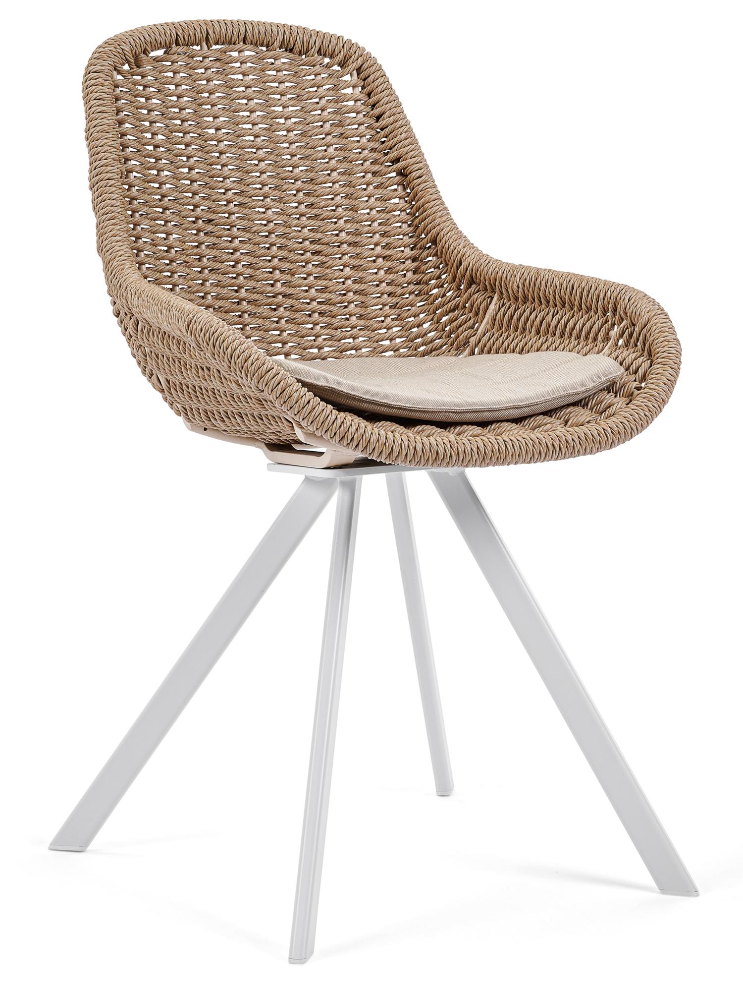 De Cesano tuinstoel in wit aluminium en wit gedraaide ronde wicker met kussen in natte heather beige all weather sunbrella® luxe is van het merk Bristolà la carte en is hier verkrijgbaar in de kleur wit/naturel.