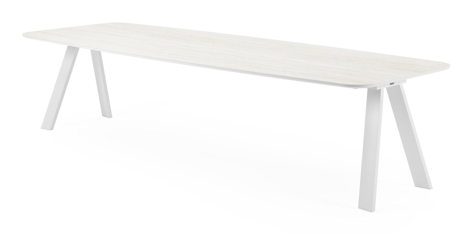 Cesano tuintafel bootvorm in wit aluminium en volkeramiek calista – L 315 x B 115 x H 73 cm