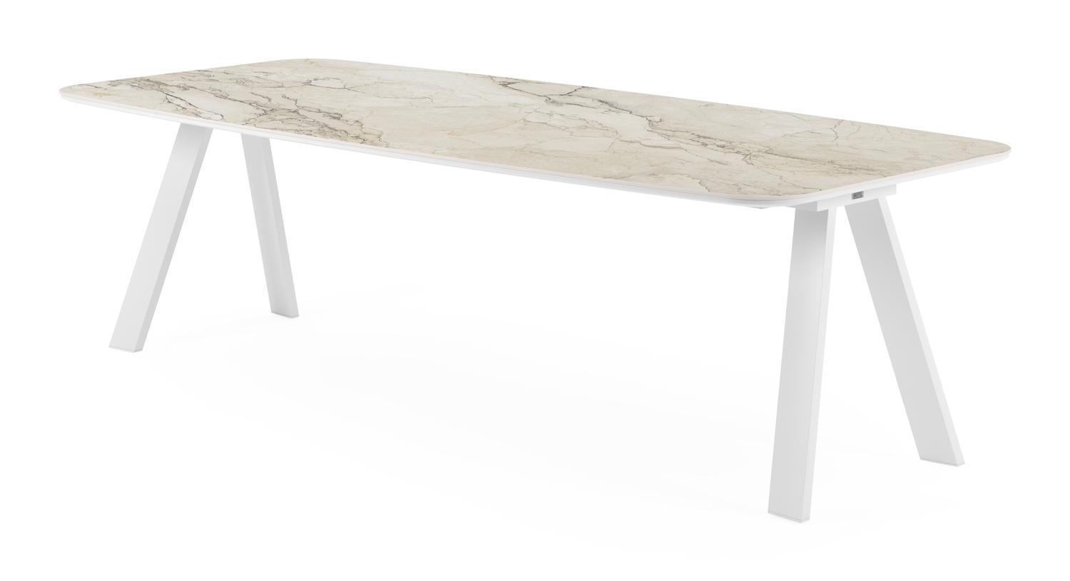 De Cesano tuintafel bootvorm in wit aluminium en volkeramiek colorado dunes – L 255 x B 115 x H 73 cm is van het merk Bristolà la carte en is hier verkrijgbaar in de kleur wit/beige.