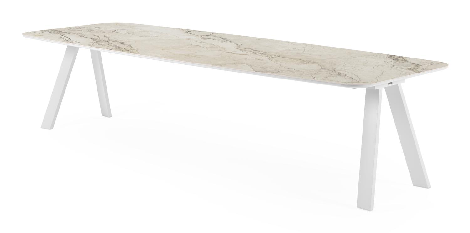 De Cesano tuintafel bootvorm in wit aluminium en volkeramiek colorado dunes – L 315 x B 115 x H 73 cm is van het merk Bristolà la carte en is hier verkrijgbaar in de kleur wit/beige.