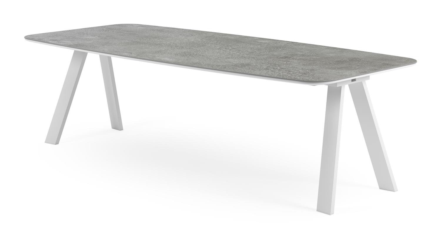 De Cesano tuintafel bootvorm in wit aluminium en volkeramiek new york – L 255 x B 115 x H 74 cm is van het merk Bristolà la carte en is hier verkrijgbaar in de kleur wit/grijs.
