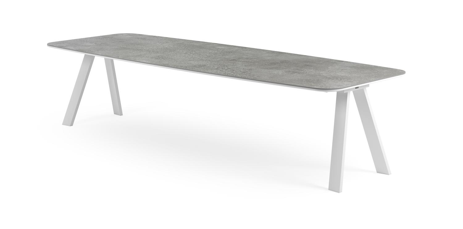 De Cesano tuintafel bootvorm in wit aluminium en volkeramiek new york – L 315 x B 115 x H 74 cm is van het merk Bristolà la carte en is hier verkrijgbaar in de kleur wit/grijs.