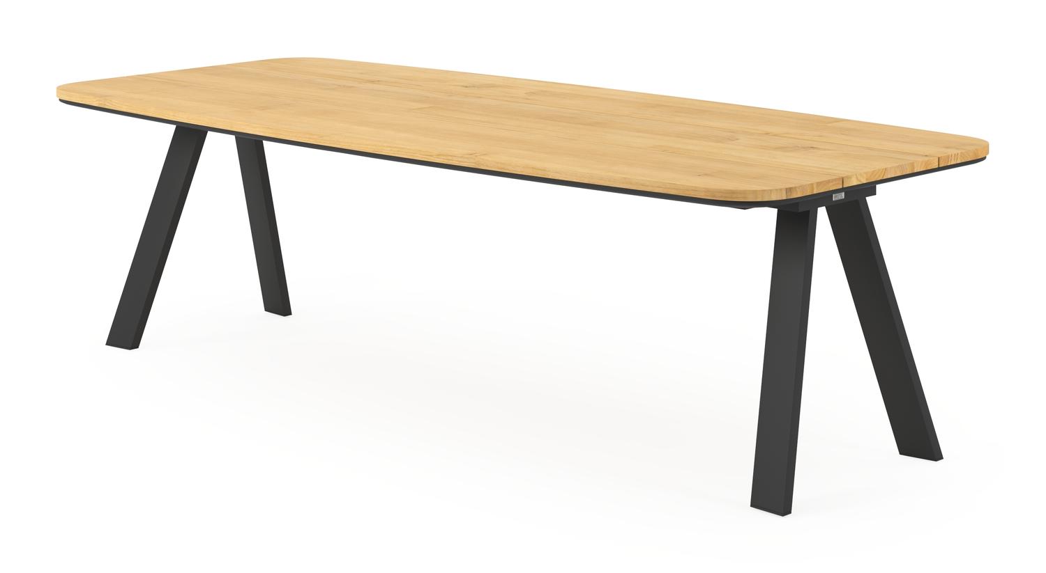Cesano tuintafel bootvorm in zwart aluminium en teak – L 255 x B 115 x H 73 cm