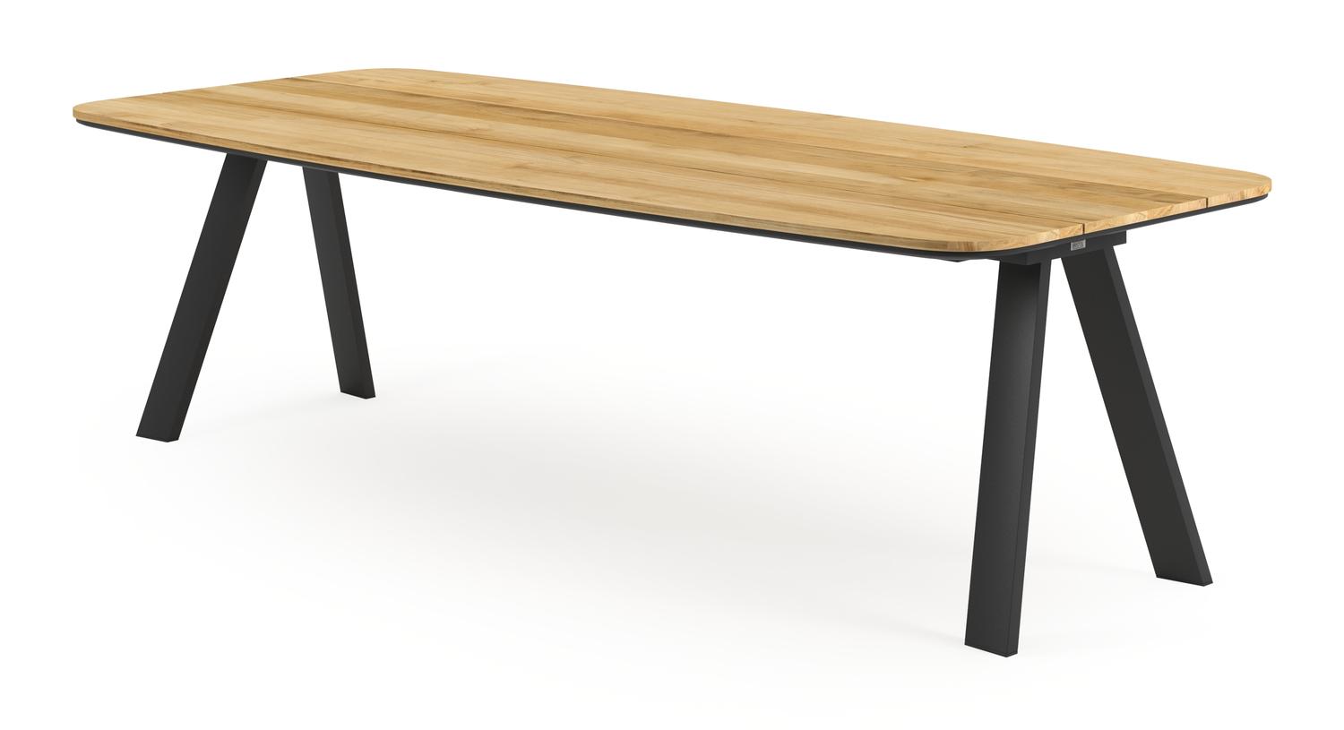Een tafelblad uit teak staat gelijk aan bijzondere kwaliteit en natuurlijk design. Teak is een kwalitatieve houtsoort gekenmerkt door zijn hardheid. Aangezien hout leeft, kan de structuur of kleur licht anders zijn dan op het beeld weergegeven.