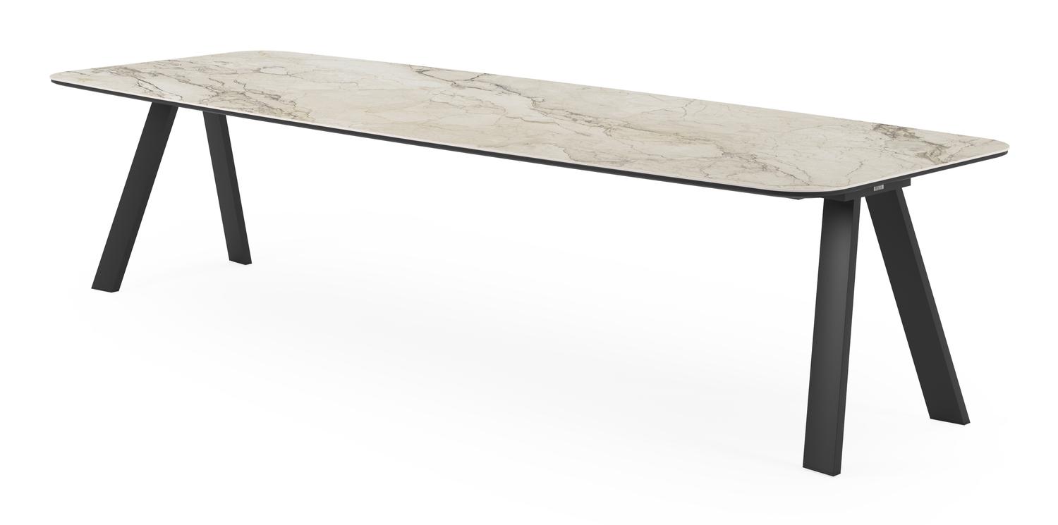De Cesano tuintafel bootvorm in zwart aluminium en volkeramiek colorado dunes – L 315 x B 115 x H 73 cm is van het merk Bristolà la carte en is hier verkrijgbaar in de kleur zwart/beige.