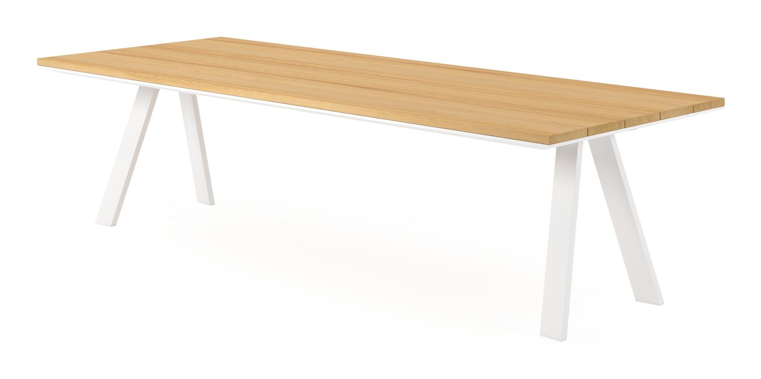 Een tafelblad uit teak staat gelijk aan bijzondere kwaliteit en natuurlijk design. Teak is een kwalitatieve houtsoort gekenmerkt door zijn hardheid. Aangezien hout leeft, kan de structuur of kleur licht anders zijn dan op het beeld weergegeven.