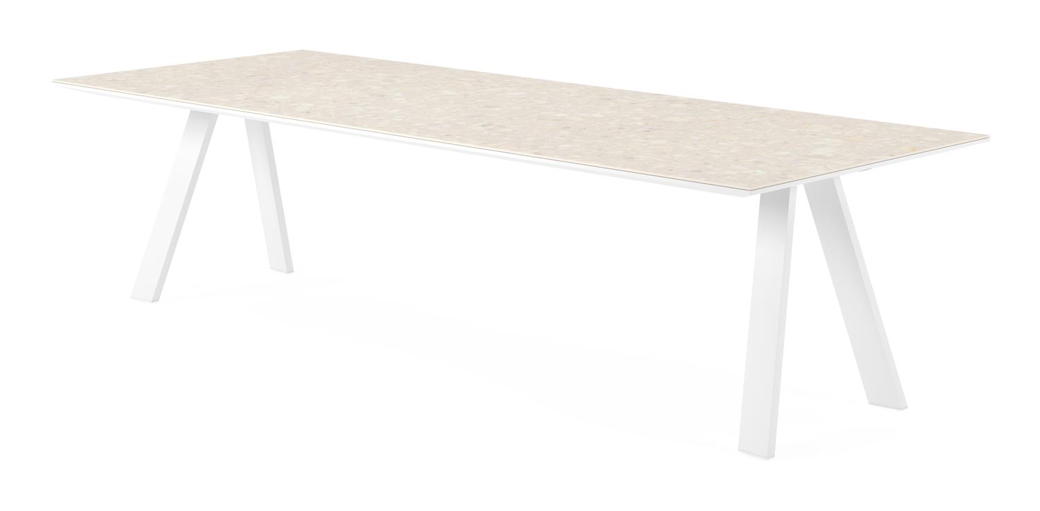 De Cesano tuintafel rechthoekig in wit aluminium en volkeramiek retrostone – L 280 x B 110 x H 73 cm is van het merk Bristolà la carte en is hier verkrijgbaar in de kleur wit/beige.