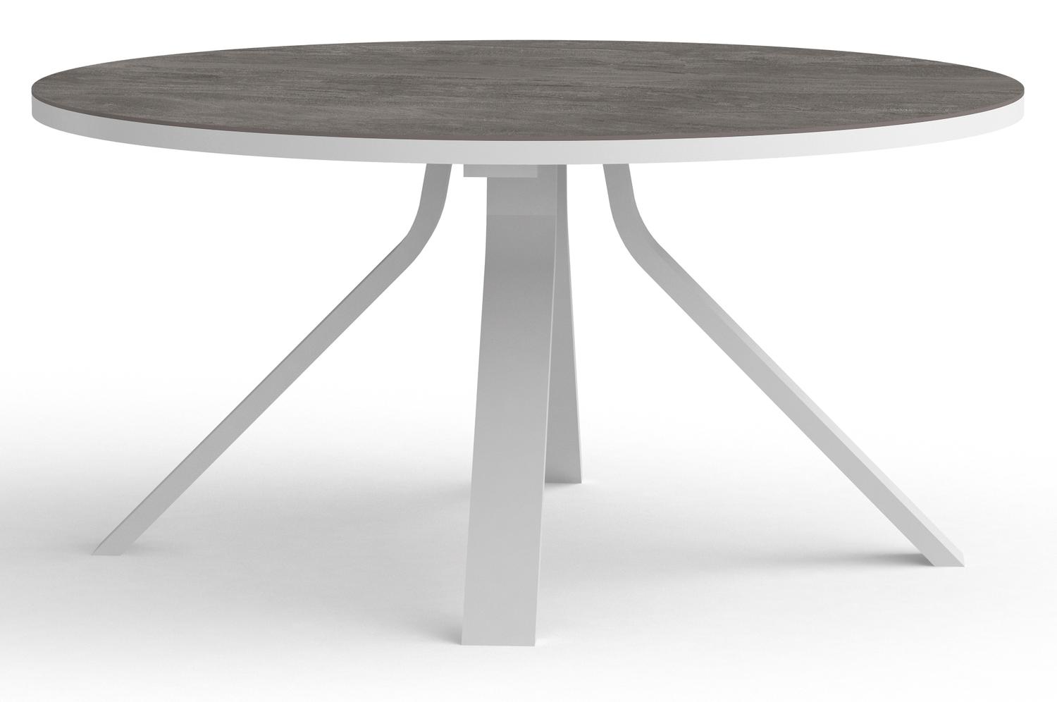 Cesano tuintafel rond in wit aluminium en volkeramiek aspen grey – Dia. 148 x H 74,5 cm