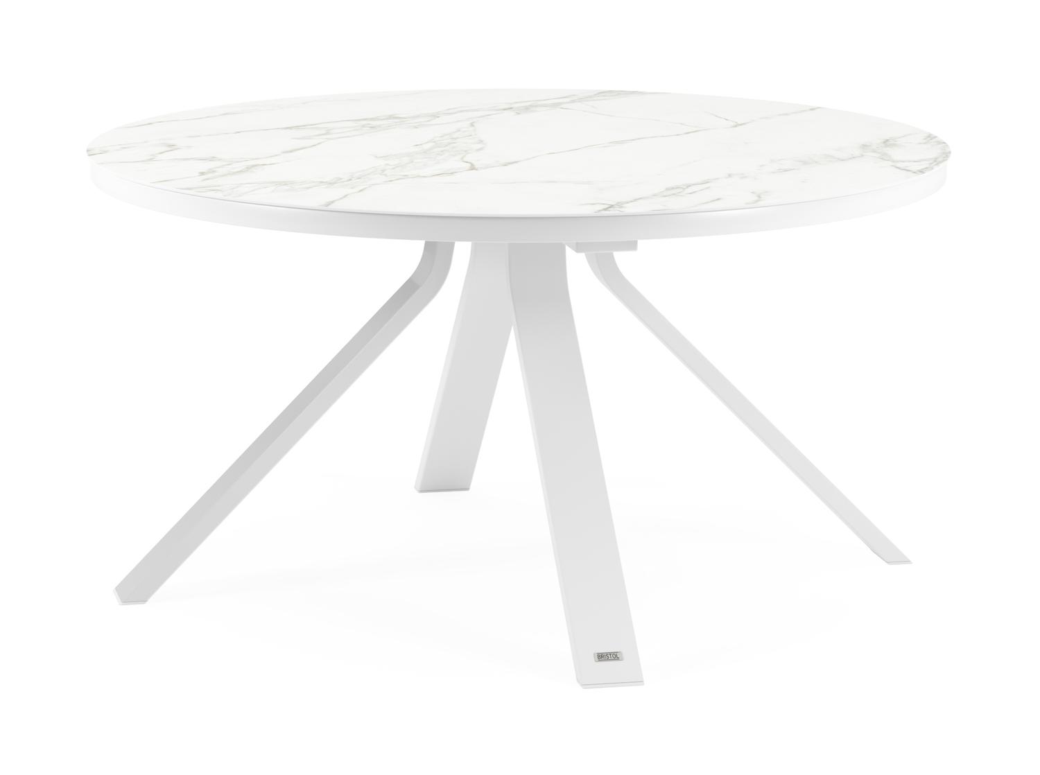 De Cesano tuintafel rond in wit aluminium en volkeramiek calacatta – Dia. 148 x H 74,5 cm is van het merk Bristolà la carte en is hier verkrijgbaar in de kleur wit.
