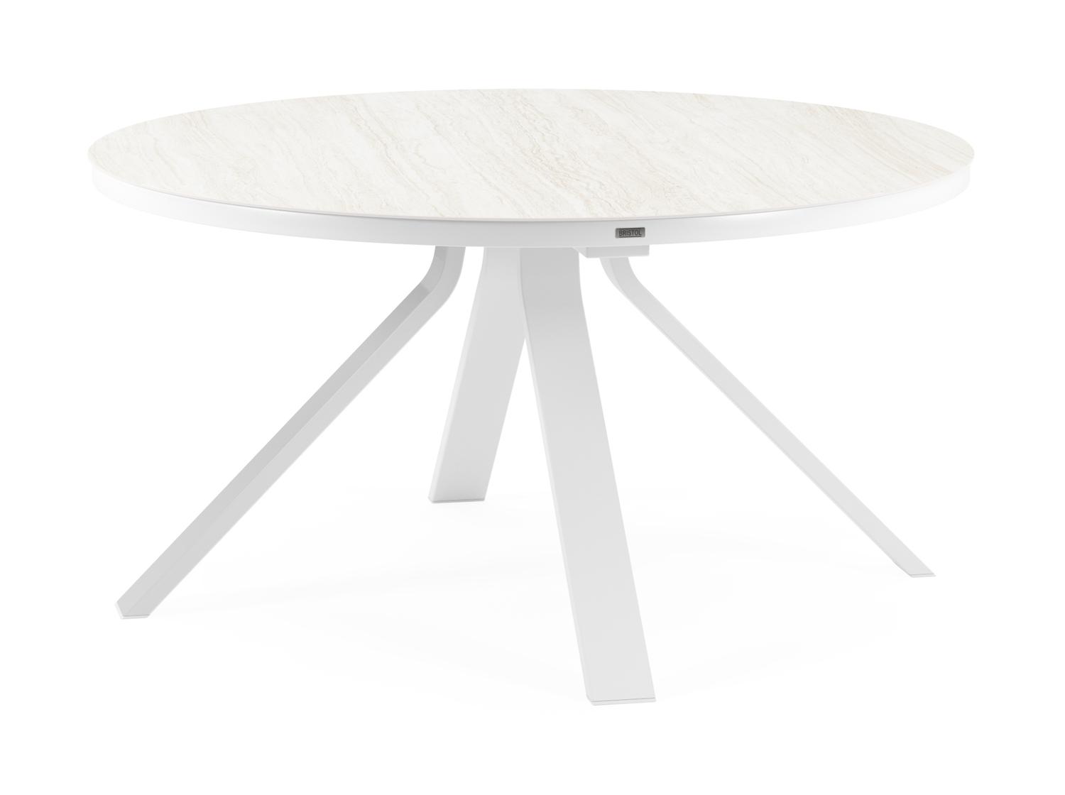 De Cesano tuintafel rond in wit aluminium en volkeramiek calista – Dia. 148 x H 73.5 cm is van het merk Bristolà la carte en is hier verkrijgbaar in de kleur wit/beige.
