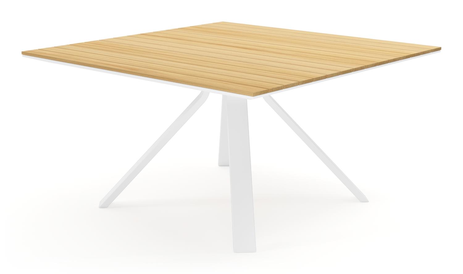 Cesano tuintafel vierkant in wit aluminium en teak – L 149 x B 149 x H 75 cm