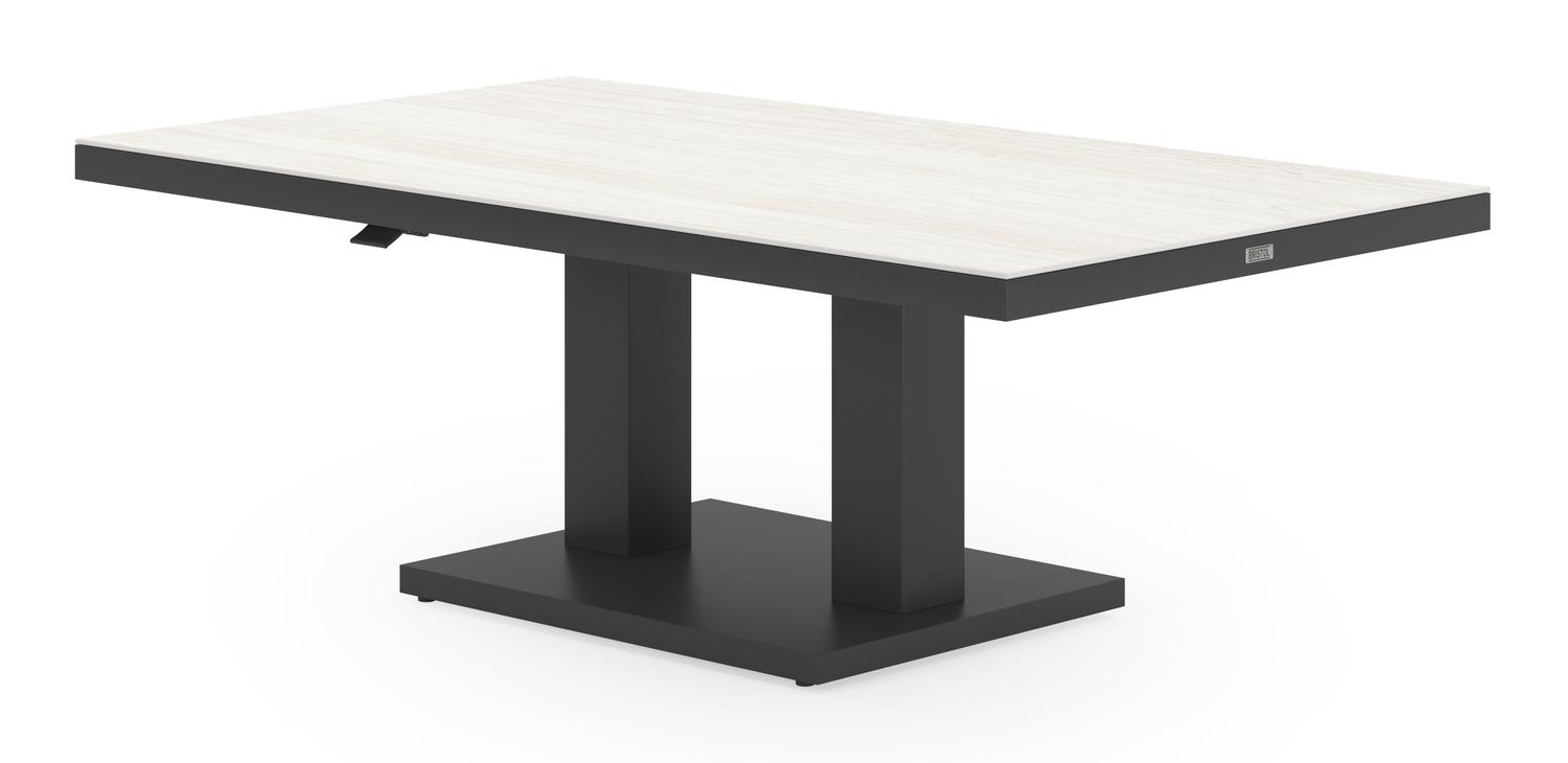 De Cirello loungetafel is een stijlvolle en handige loungetafel. De tafel is geschikt voor low dining aangezien de Cirello loungetafel in hoogte verstelbaar is. Met de hendel kunt u heel eenvoudig de hoogte van tafel aanpassen. Het aluminium frame is bestand tegen roest waardoor deze loungetafel perfect is voor alle seizoenen. Het tafelblad bestaat uit volkeramiek, een hoogwaardig materiaal dat bekend staat om zijn duurzaamheid en weerbestendigheid. Het is bestand tegen krassen, vlekken en verkleuring, waardoor het perfect is voor buitengebruik. Bovendien is volkeramiek eenvoudig te reinigen en te onderhouden.
