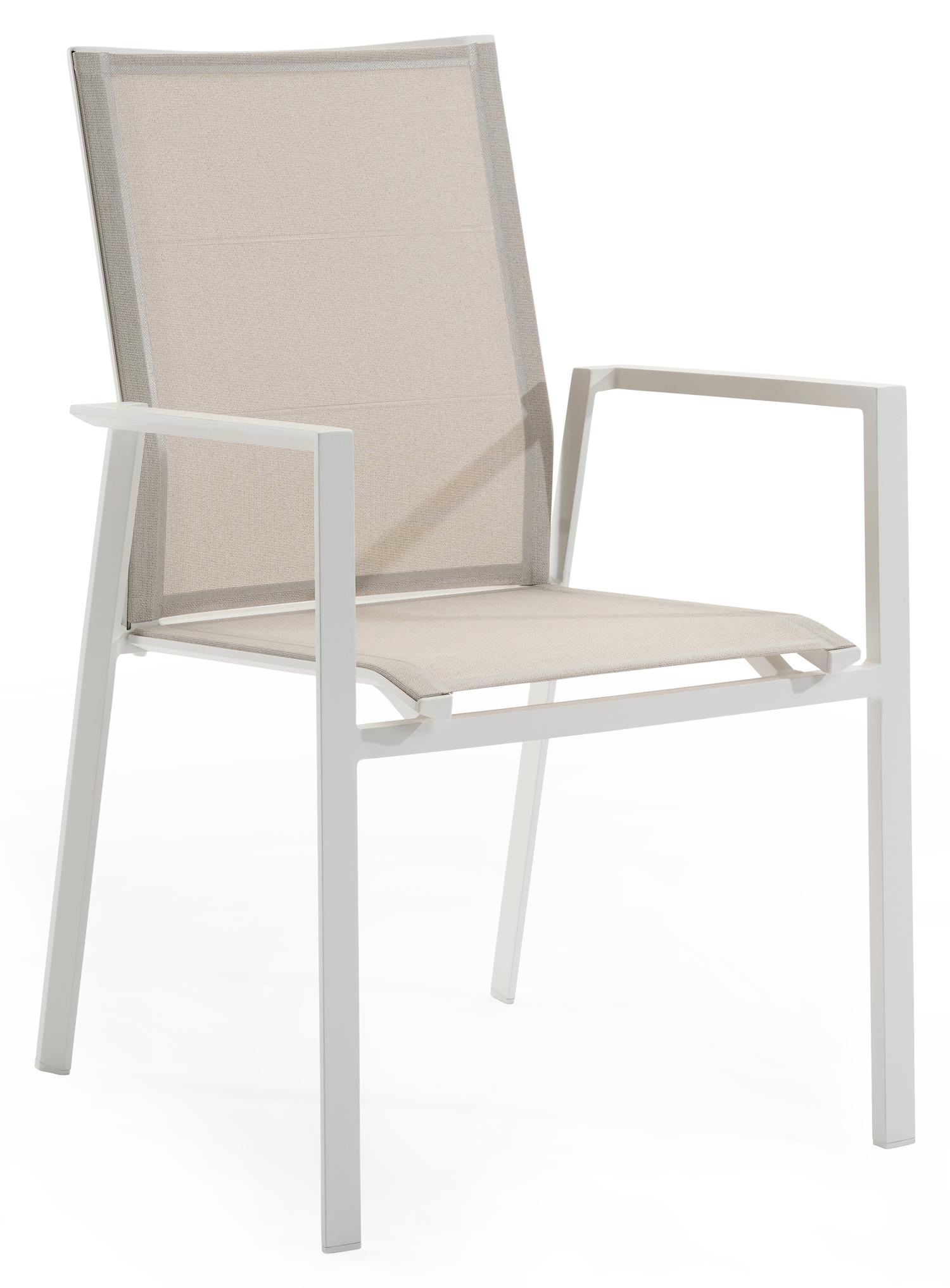 De Cirello stapelbare tuinstoel in wit aluminium en beige textileen is van het merk Bristolà la carte en is hier verkrijgbaar in de kleur wit/beige.