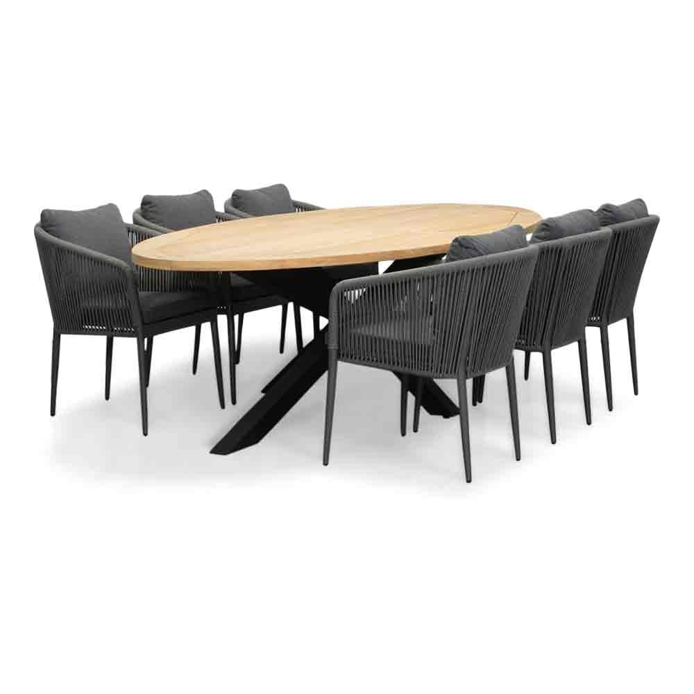 Cleve/Orlando antraciet dining tuinset 7-delig | teakhout + touw | 240cm ovaal