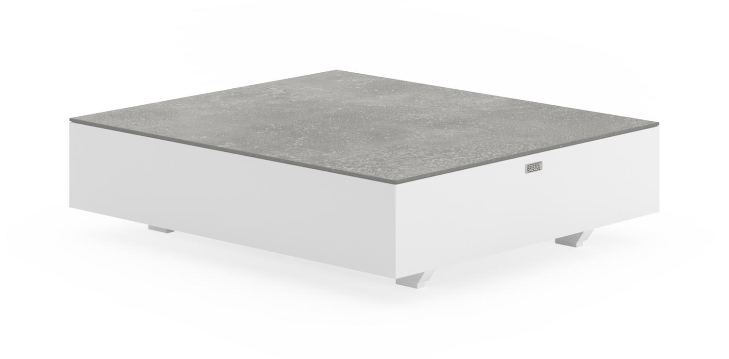 De Como loungetafel in wit aluminium en new york volkeramiek – L 70 x B 80 x H 20 cm is van het merk Bristolà la carte en is hier verkrijgbaar in de kleur wit/grijs.