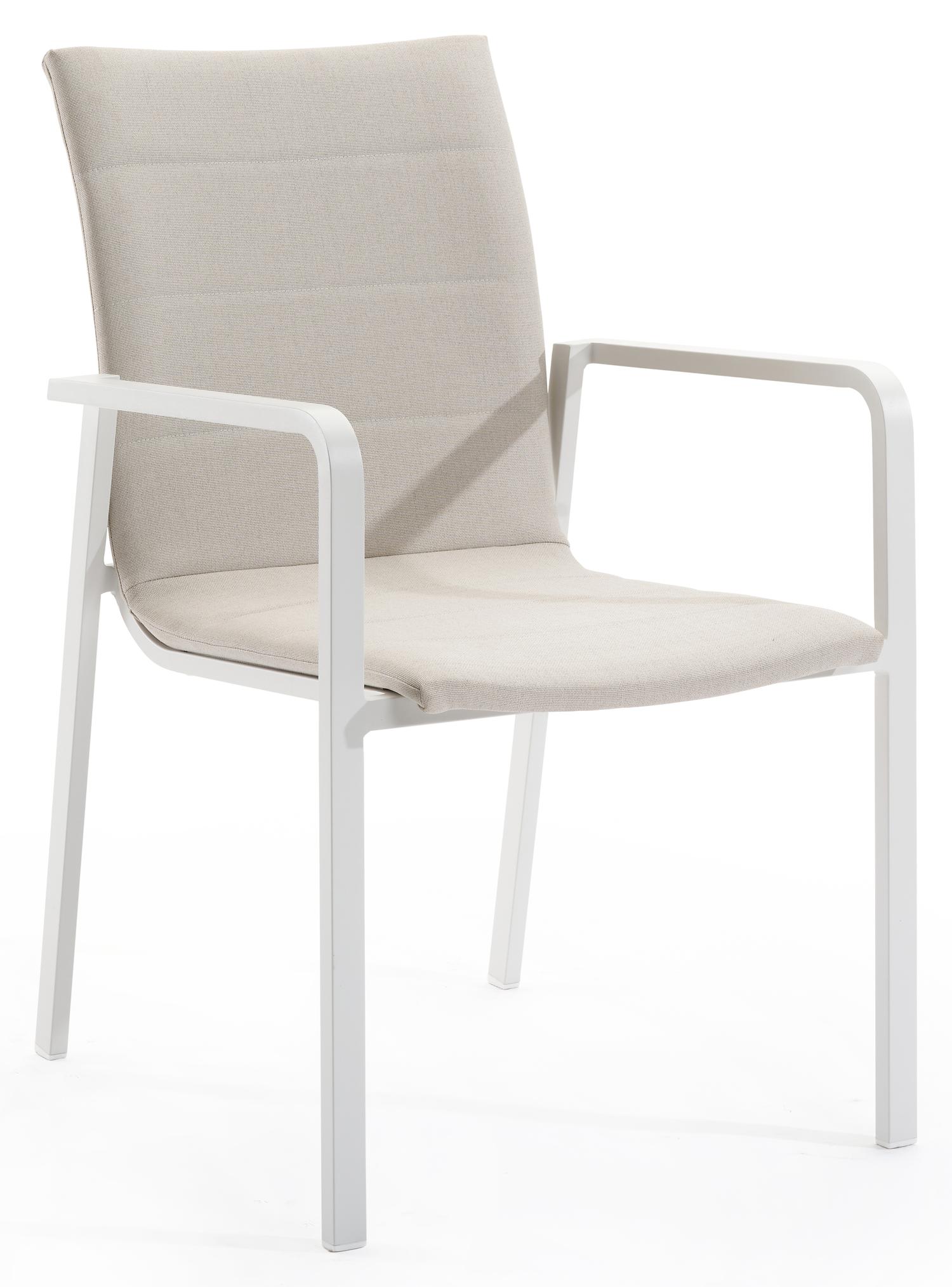 De Como stapelbare tuinstoel in wit aluminium en beige luxe textileen is van het merk Bristolà la carte en is hier verkrijgbaar in de kleur wit/beige.