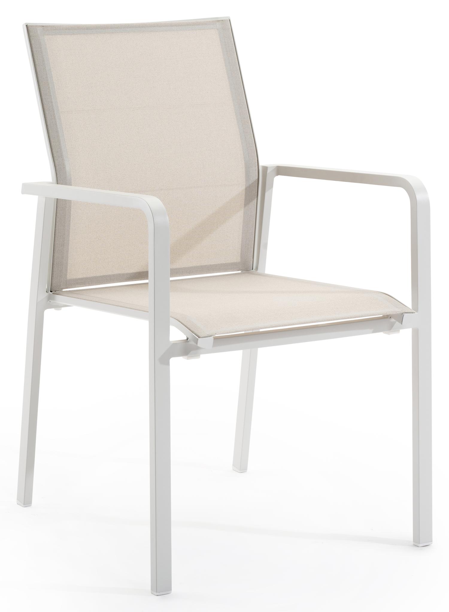 De Como stapelbare tuinstoel in wit aluminium en beige textileen is van het merk Bristolà la carte en is hier verkrijgbaar in de kleur wit/beige.