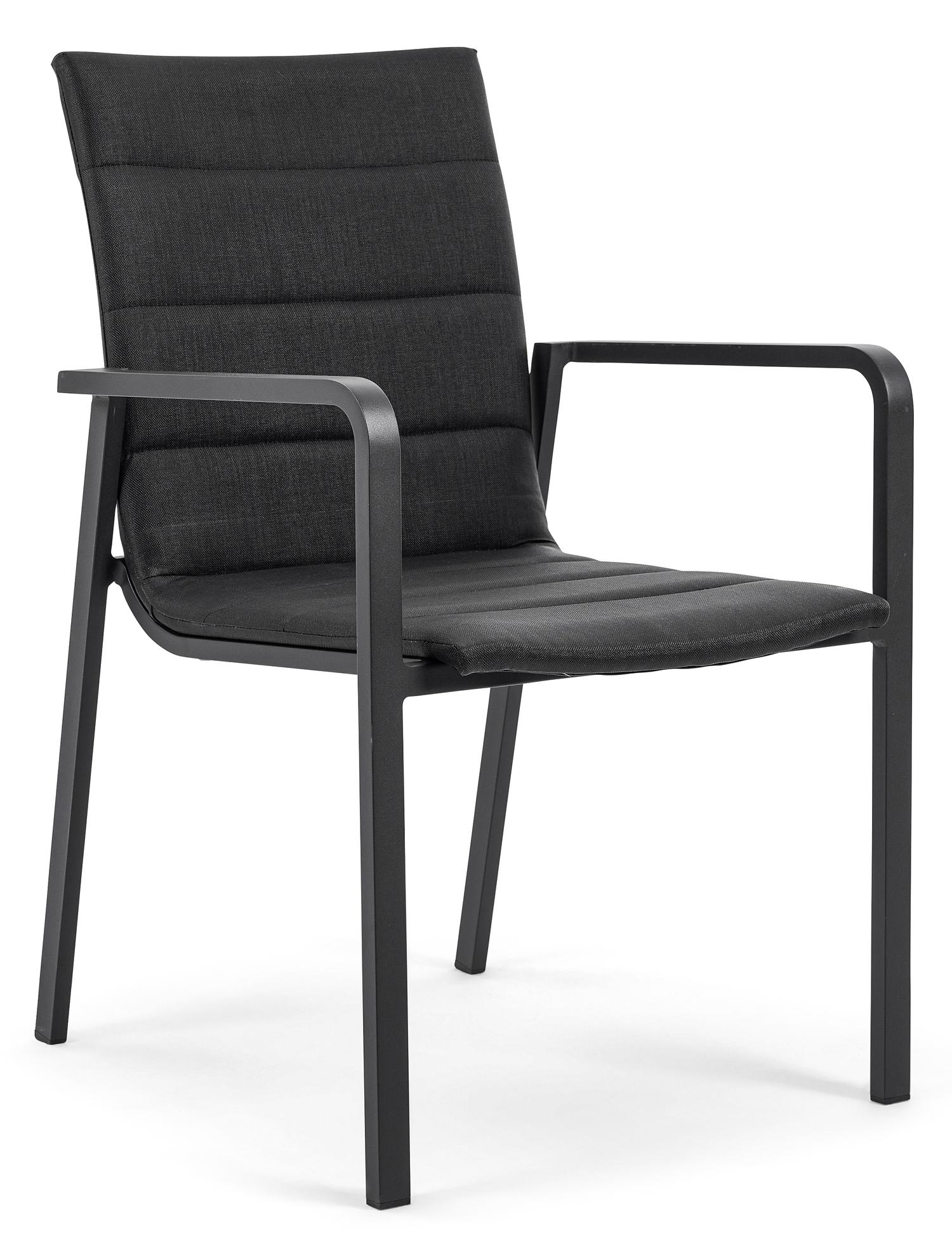 De Como stapelbare tuinstoel in zwart aluminium en zwart luxe comfort textilene is van het merk Bristolà la carte en is hier verkrijgbaar in de kleur zwart/grijs.