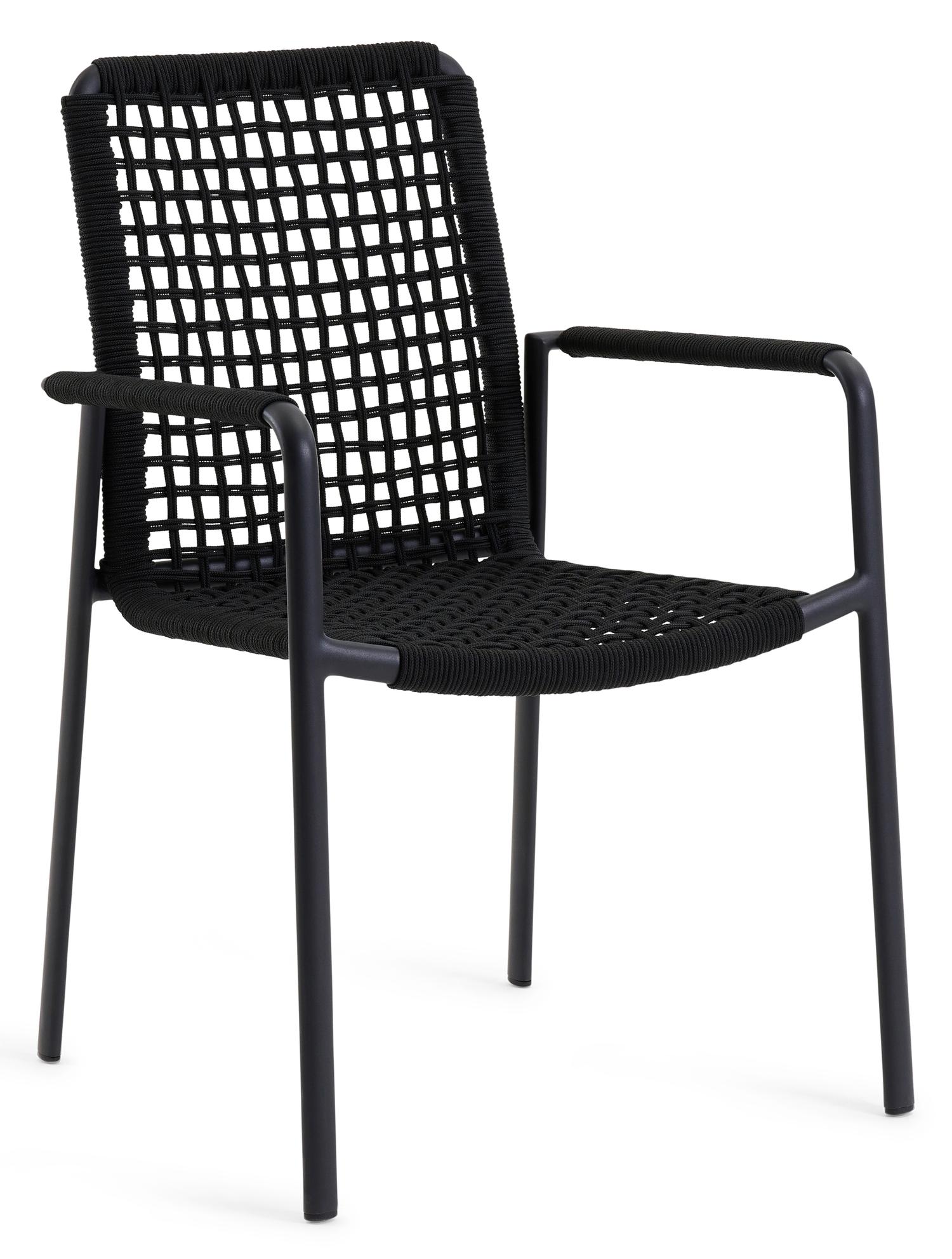 De Como stapelbare tuinstoel in zwart aluminium en zwart vierkant geweven ronde rope is van het merk Bristolà la carte en is hier verkrijgbaar in de kleur zwart.