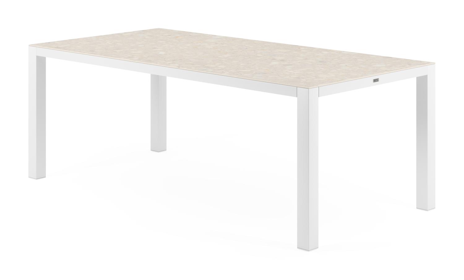 De Como tuintafel rechthoekig in wit aluminium en volkeramiek retrostone – L 200 x B 100 x H 75 cm is van het merk Bristolà la carte en is hier verkrijgbaar in de kleur wit/beige.