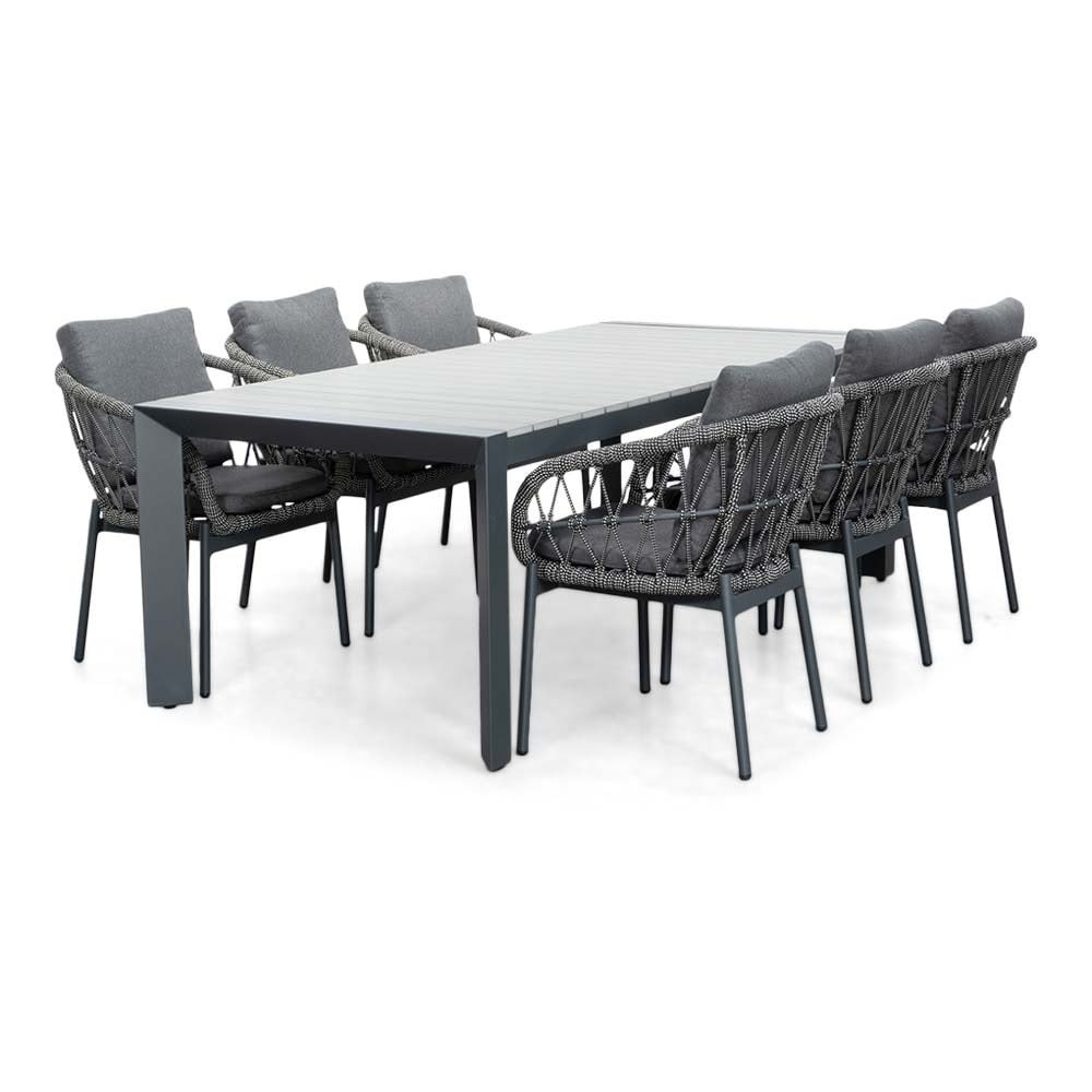De Cortona Grey/Dakota grijs dining tuinset 7-delig is van het merk lux outdoor living en is hier verkrijgbaar in de kleur zwart, grijs.