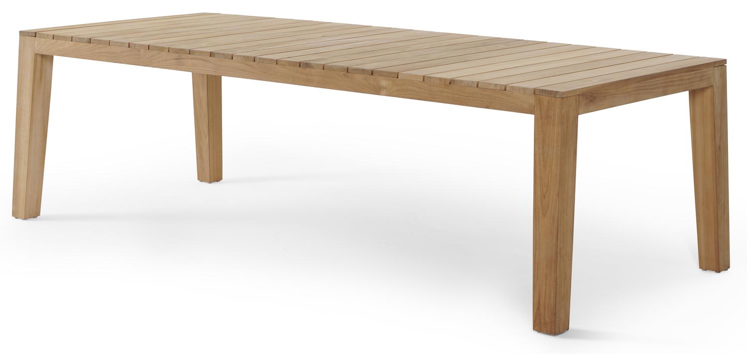 Een tuintafel uit teak staat gelijk aan bijzondere kwaliteit en natuurlijk design. Teak is een kwalitatieve houtsoort gekenmerkt door zijn hardheid. Aangezien hout leeft, kan de structuur of kleur licht anders zijn dan op het beeld weergegeven.