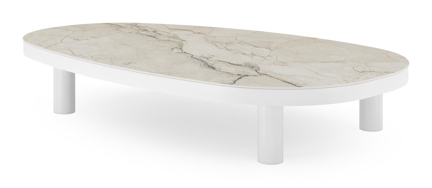 De Donato loungetafel in wit aluminium en volkeramiek colorado dunes – L 151 x B 90 x H 25 cm is van het merk Bristolà la carte en is hier verkrijgbaar in de kleur wit.