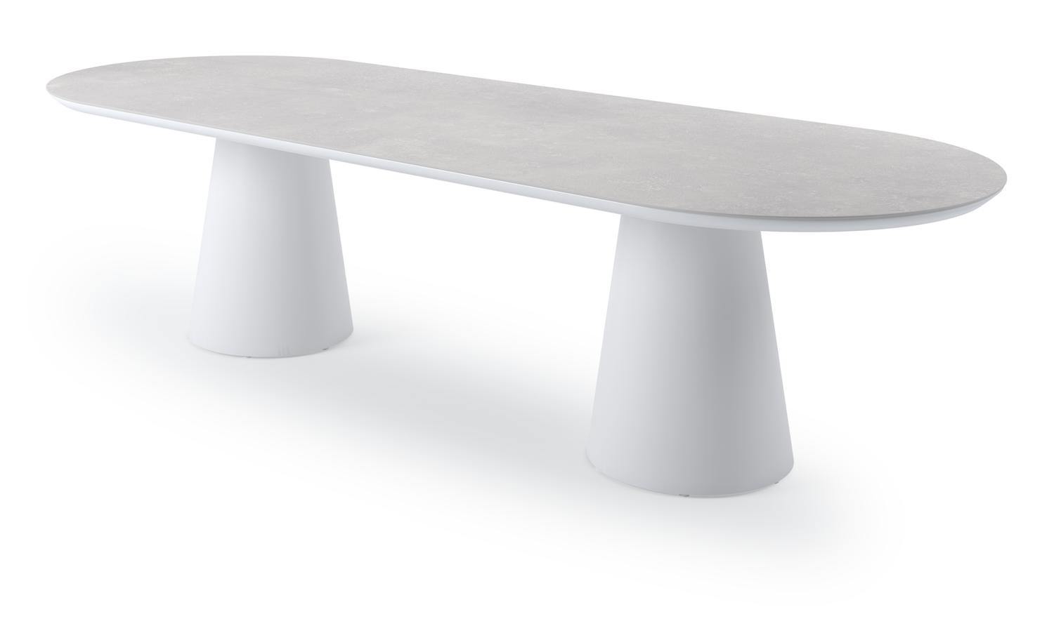 De Donato tuintafel plat ovaal in wit aluminium en volkeramiek new york – L 300 x B 110 x H 74 cm is van het merk Bristolà la carte en is hier verkrijgbaar in de kleur grijs/wit.