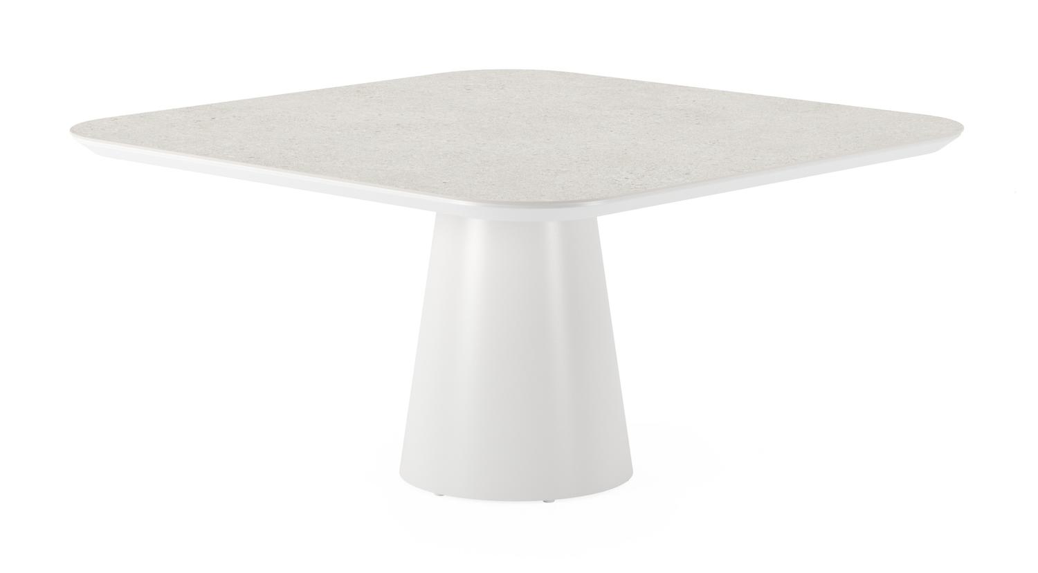 De Donato tuintafel vierkant afgerond in wit aluminium en volkeramiek shilin – L 148 x B 148 x H 74 cm is van het merk Bristolà la carte en is hier verkrijgbaar in de kleur wit/beige.