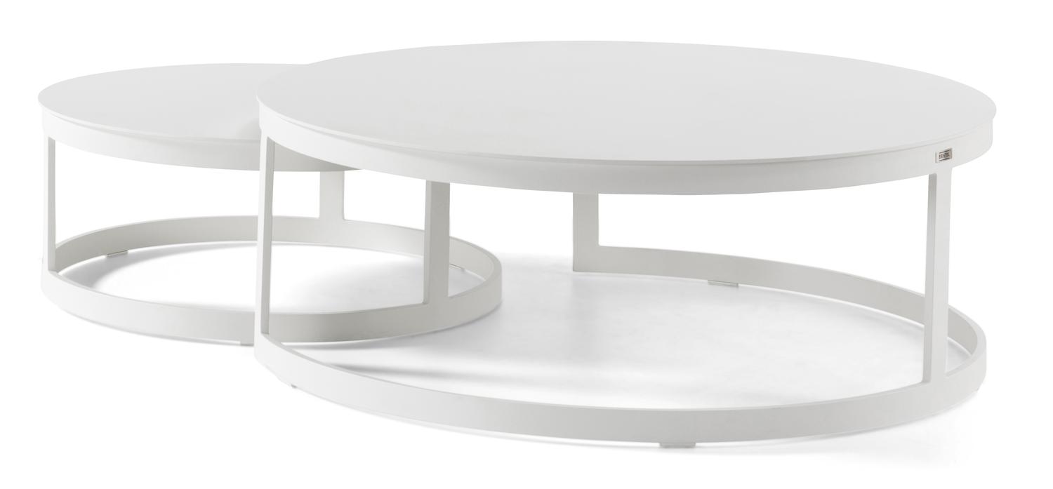 De Enna loungetafels in wit aluminium – Tafel 1 Dia. 70 x H 30, Tafel 2 Dia. 100 x H 37 cm is van het merk Bristolà la carte en is hier verkrijgbaar in de kleur wit.