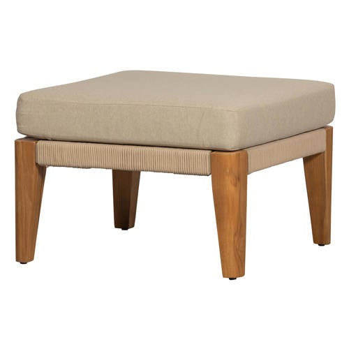 Royale, comfortabele hocker – Onderdeel van de Exotan outdoor San Remo serie – Vervaardigd uit teakhout met een comforabel kussen – H 43 cm x B 63 cm x D 63 cm Deze hocker is een mooie aanvulling op de Exotan San Remo set, naast dat deze hocker een mooie uitstraling heeft, is deze praktisch en stabiel. Deze hocker geeft een mooie woonsfeer, waarmee je de mooie zomerdagen nog prettiger kan beleven. Outdoor Bescherm de meubelen tegen harde regenval, nachtvorst en de winterperiode met een plasticfolie of beschermhoes. Indien mogelijk is het beter dat de meubelen binnenshuis overwinteren. Kenmerken Teakhout is een tropisch hardhout en een zeer duurzame houtsoort. Teakhout heeft van zichzelf een donkerbruine/rode kleur wat zeer luxe oogt. Teakhout is gekenmerkt door een strakke, rechte nerf en is hierdoor zeer geschikt voor verwerking. Bij outdoor gebruik kan het teakhout echter wel verkleuren of ontstaan er haarscheurtjes in het hout. Dit heeft geen invloed op de constructie. Afmetingen – Hoogte: 43 cm – Breedte: 63 cm – Diepte: 63 cm – Poothoogte: 30 cm – Draaggewicht 100 kg – Gewicht: 8 kg Onderhoud Om een teakhouten outdoor meubel in optimale conditie te houden is het raadzaam het regelmatig te onderhouden met de daarvoor bestemde onderhoudsmiddelen, raadpleeg een verfspeciaalzaak voor het beste advies. Reinig teakhout niet met te veel water, hierdoor gaan de houtvezels overeind staan en wordt het meubel erg ruw. Levering Het artikel wordt geleverd in één pakket met een minimale afname van één stuk. Het artikel is al gemonteerd en direct te gebruiken. Bij binnenhuis gebruik plaats voor het beschermen van harde vloeren viltglijders aan de onderzijde van de poten, dit voorkomt beschadigingen.
