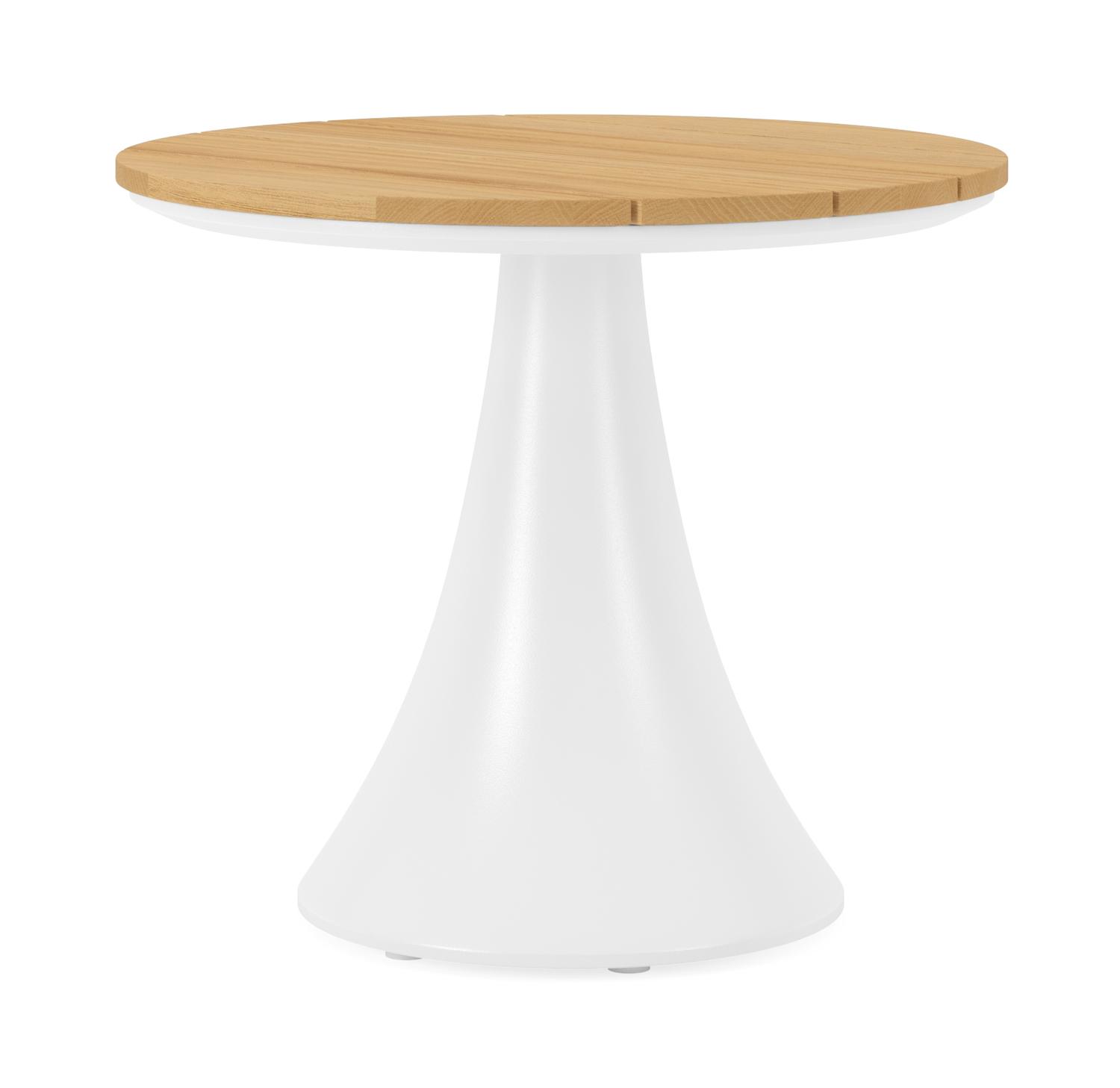 Productomschrijving Fano loungetafel in wit aluminium en teak – Dia. 65 x H 55 cm