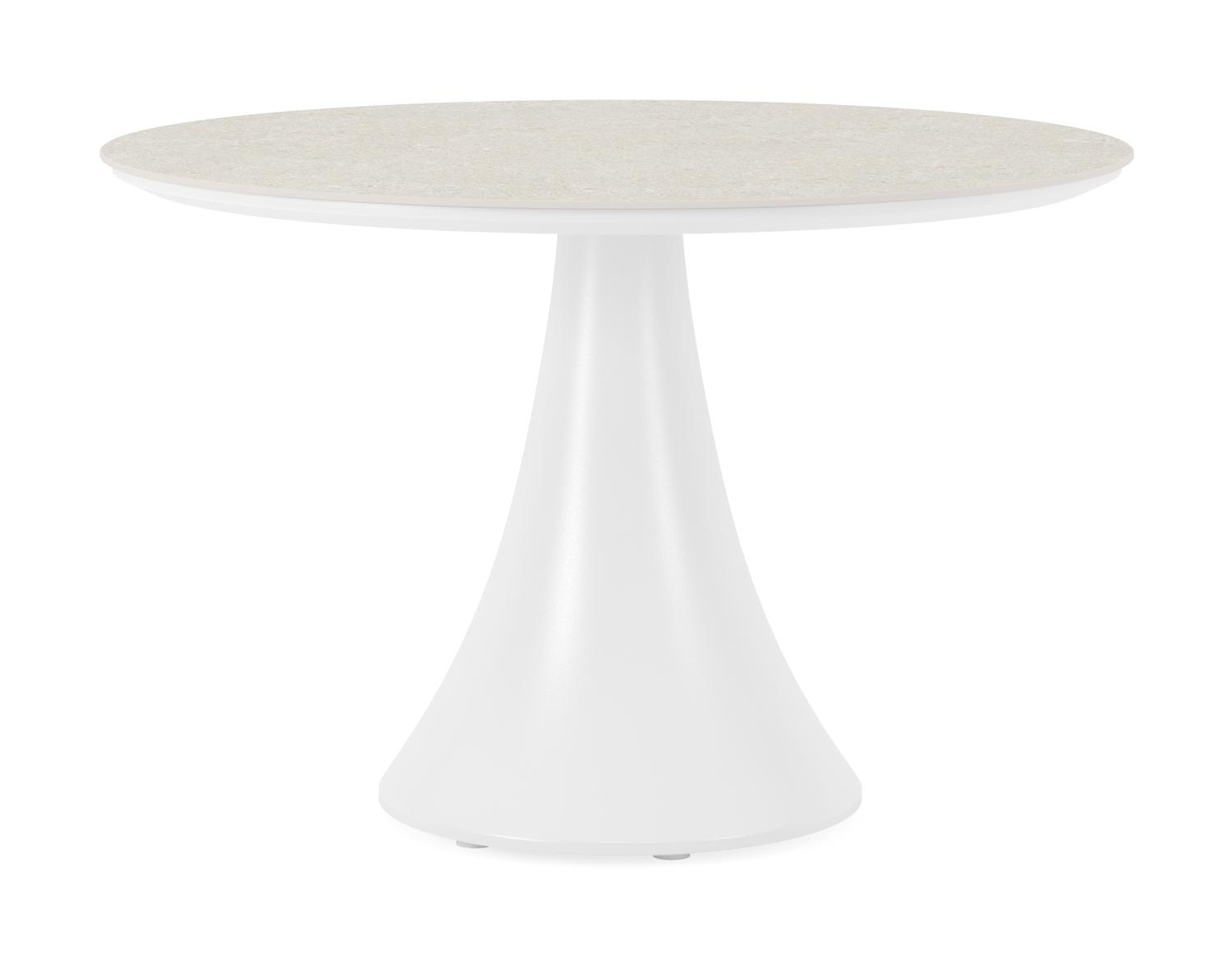 De Fano loungetafel in wit aluminium en volkeramiek shilin – Dia. 85 x H 55 cm is van het merk Bristolà la carte en is hier verkrijgbaar in de kleur wit/beige.