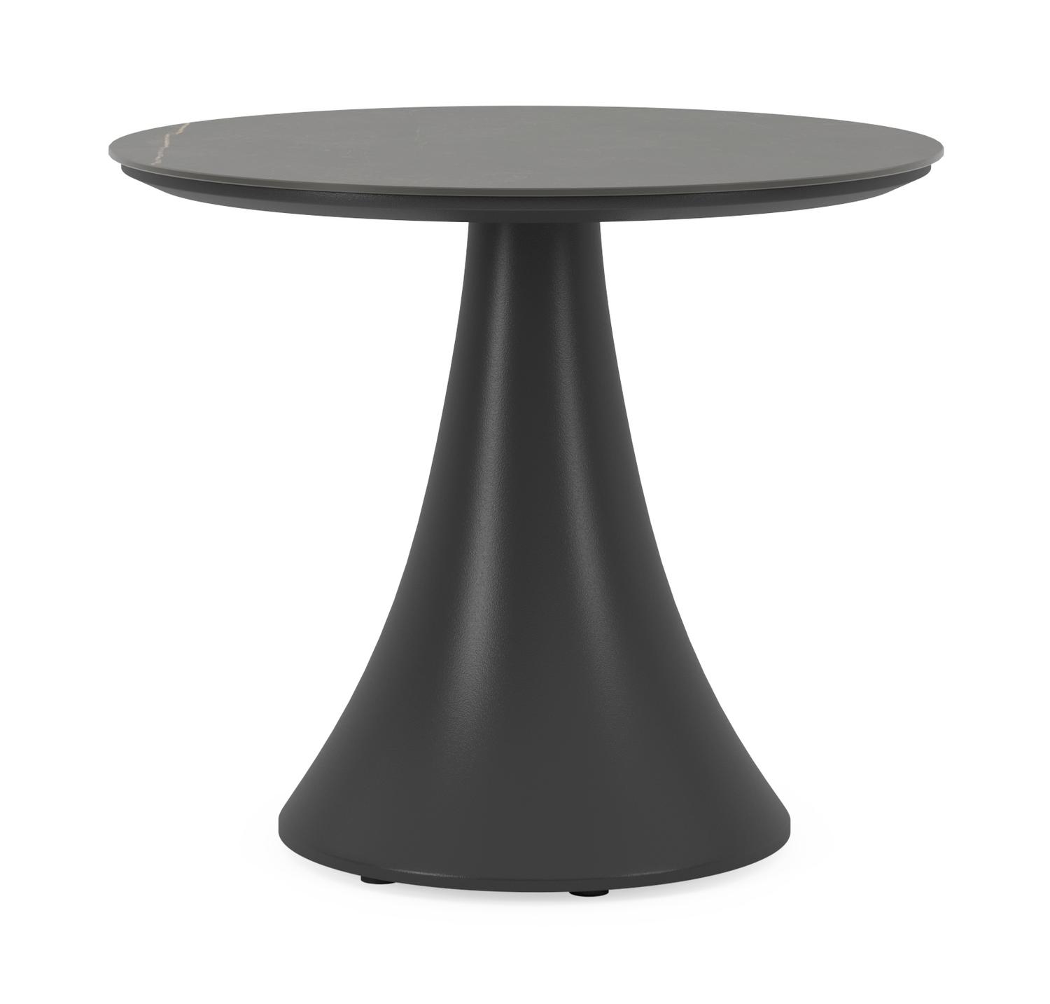 De Fano loungetafel in zwart aluminium en volkeramiek calatorao – Dia. 65 x H 55 cm is van het merk Bristolà la carte en is hier verkrijgbaar in de kleur zwart.