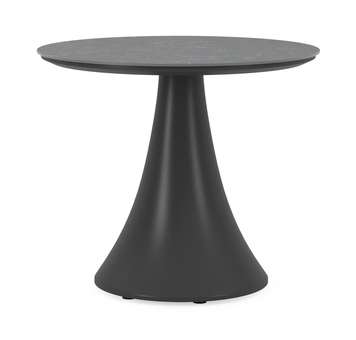 De Fano loungetafel in zwart aluminium en volkeramiek pierre bleue – Dia. 65 x H 55 cm is van het merk Bristolà la carte en is hier verkrijgbaar in de kleur zwart.