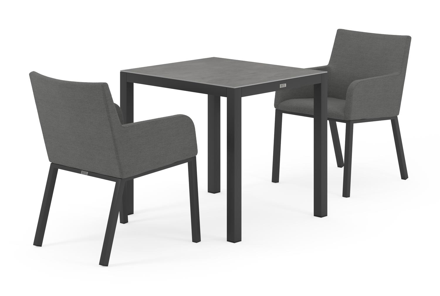 De Feltro tuinset in zwart aluminium en grijs volkeramiek tafelblad met 2 Rivo tuinstoelen is van het merk Bristol Essentials en is hier verkrijgbaar in de kleur zwart/grijs.