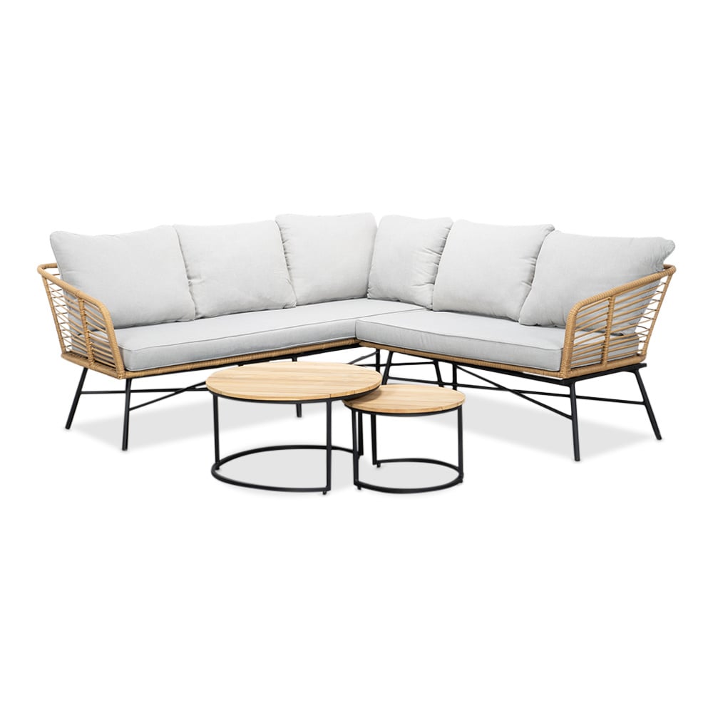 De Flow hoek loungeset 4-delig is van het merk buiten living en is hier verkrijgbaar in de kleur taupe – naturel – bruin.