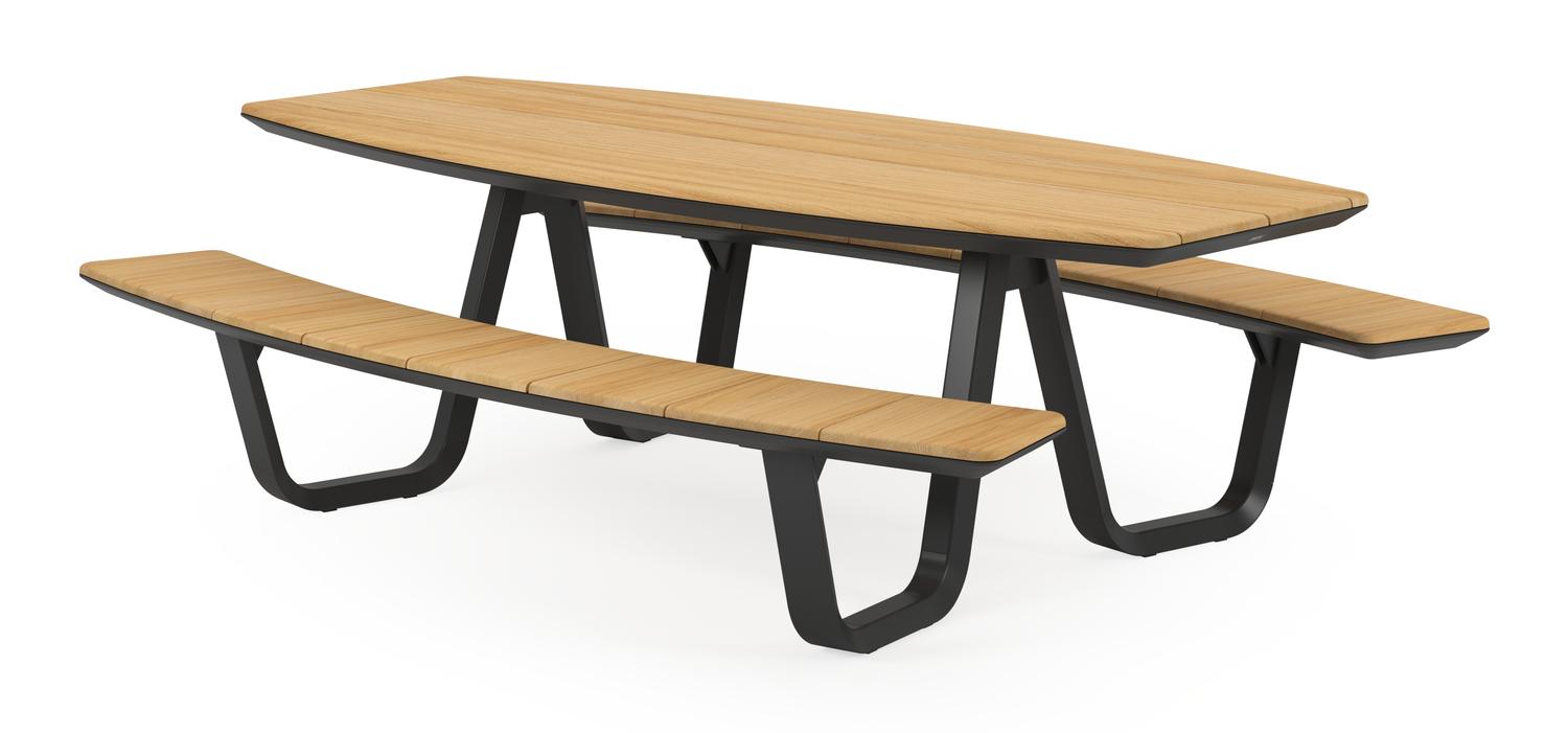 Forno picknicktafel in zwart aluminium en teak tafelblad – L 240 x B 180 x H 73 cm