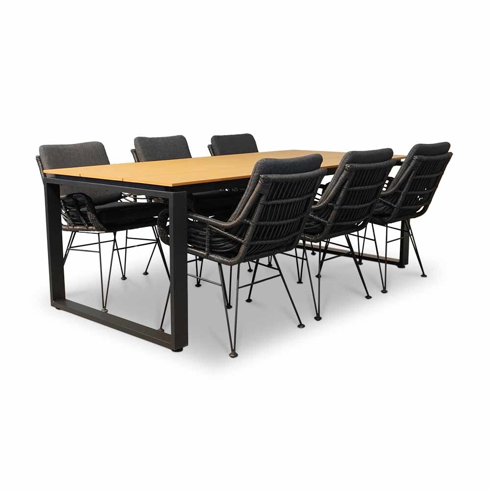 De Helsinki Natural/Carlos Charcoal dining tuinset 7-delig is van het merk lux outdoor living en is hier verkrijgbaar in de kleur light teak, zwart.