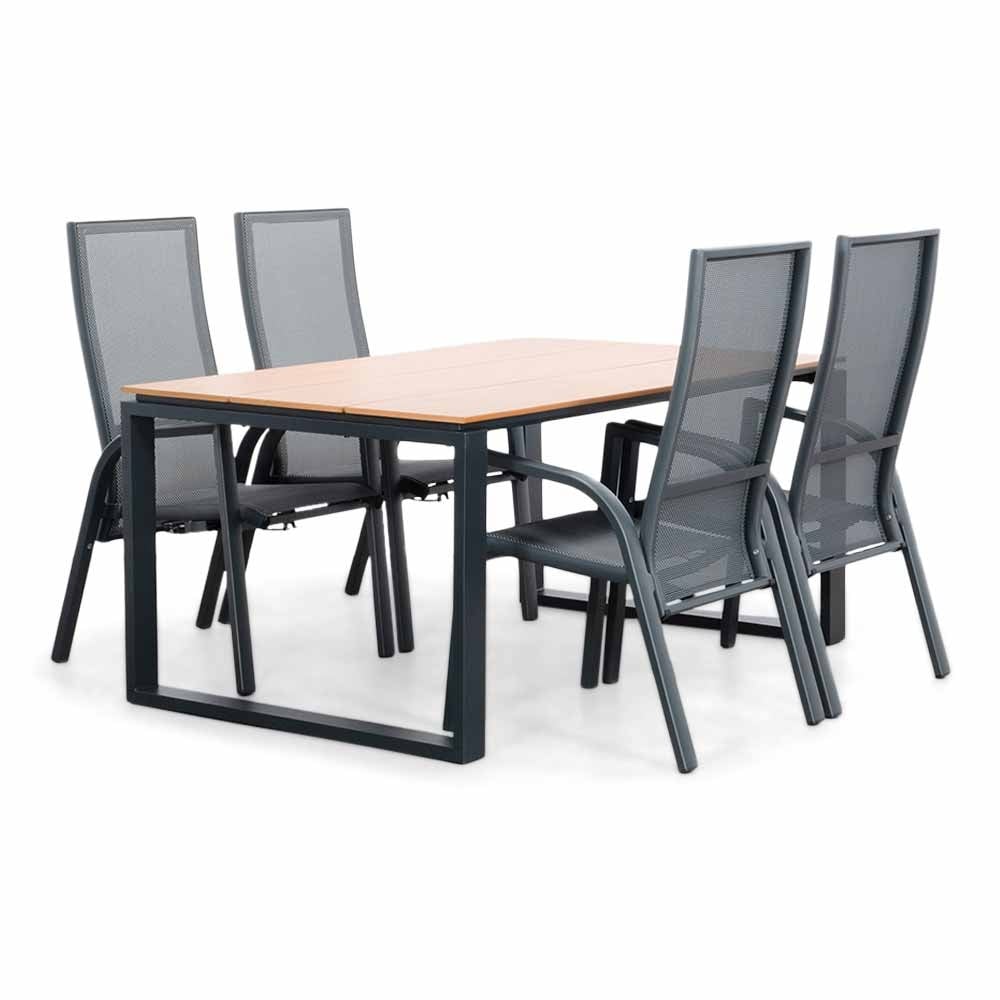 De Helsinki Natural/Mojito Negro dining tuinset 5-delig is van het merk lux outdoor living en is hier verkrijgbaar in de kleur light teak, zwart.