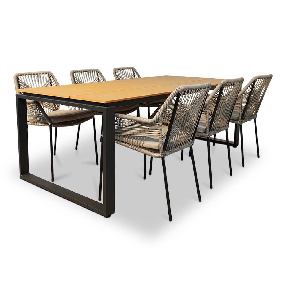 De Helsinki Natural/Seville zand dining tuinset 7-delig is van het merk lux outdoor living en is hier verkrijgbaar in de kleur taupe – naturel – bruin, light teak.