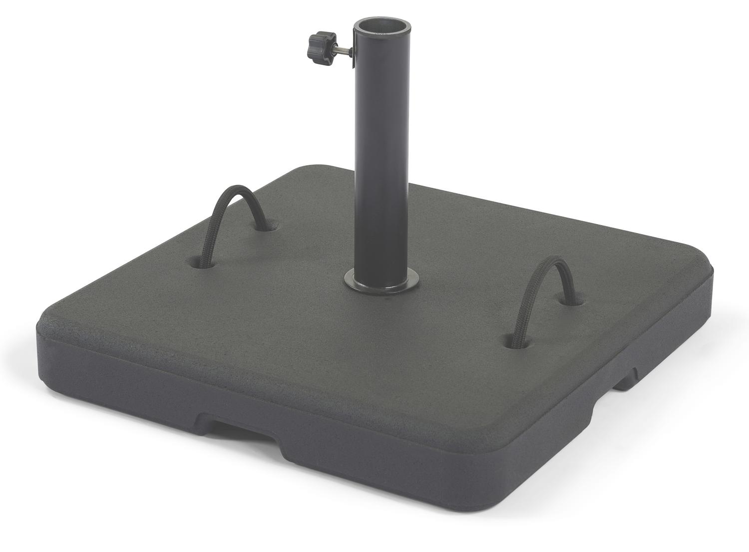 De Intenso parasolvoet is voor parasols met een mast van maximum 55 mm diameter. De buis is voorzien met een ingewerkte centraalhouder en spanschroef, deze kan tot 27 mm toegeschroeft worden. De parasolvoet heeft de afmeting van L 59 x B 59 cm, een gewicht van 60 kg en de kleur is grijs. Deze parasolvoet is niet geschikt voor zweefparasols. De wielen zijn exclusief.