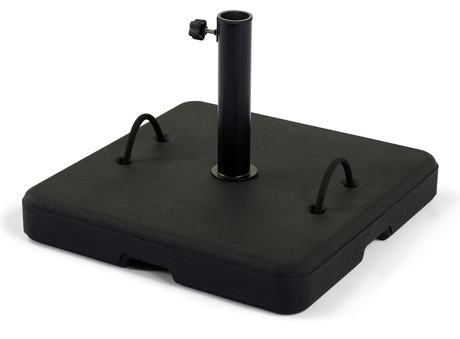 De Intenso parasolvoet is voor parasols met een mast van maximum 55 mm diameter. De buis is voorzien met een ingewerkte centraalhouder en spanschroef, deze kan tot 27 mm toegeschroeft worden. De parasolvoet heeft de afmeting van L 59 x B 59 cm, een gewicht van 60 kg en de kleur is zwart. Deze parasolvoet is niet geschikt voor zweefparasols.